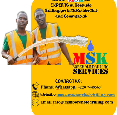 Reach out for borehole drilling, pump installation, or water services across The Gambia.